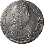 L’écu à la mêche longue a été frappé entre 1646 et 1662.